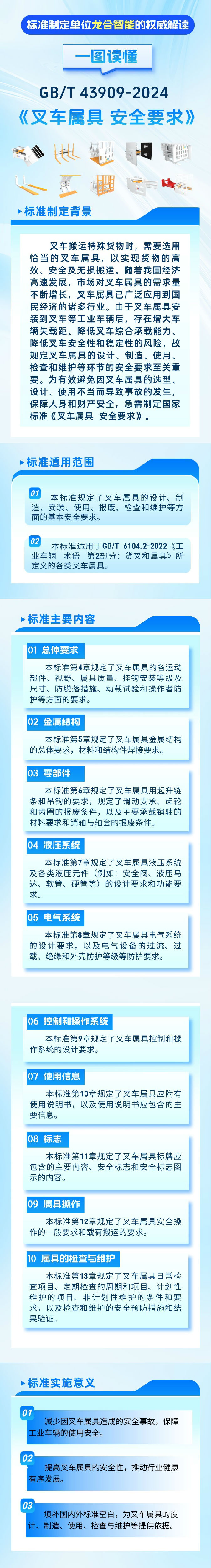龍合智能裝備制造有限公司自2017年3月開始擔(dān)任屬具工作組組長單位以來,在上級標(biāo)委會的指導(dǎo)下、在全體組員的共同努力下,卓有成效地開展了許多工作,為促進我國工業(yè)車輛標(biāo)準(zhǔn)體系建設(shè)和促進行業(yè)整體技術(shù)進步做出了積極貢獻(xiàn)。截至目前,我國工業(yè)車輛屬具專業(yè)領(lǐng)域共有現(xiàn)行有效標(biāo)準(zhǔn)20項(其中國家標(biāo)準(zhǔn)3項,行業(yè)標(biāo)準(zhǔn)17項);已完成報批待批準(zhǔn)的行業(yè)標(biāo)準(zhǔn)7項;在研的屬具標(biāo)準(zhǔn)制修訂計劃項目共8項(其中國家標(biāo)準(zhǔn)2項、行業(yè)標(biāo)準(zhǔn)6項)。